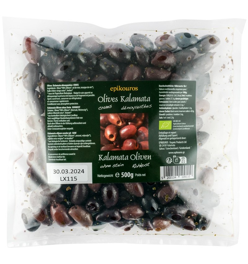 Masline kalamata bio, crude, fara samburi, 500g Epikouros